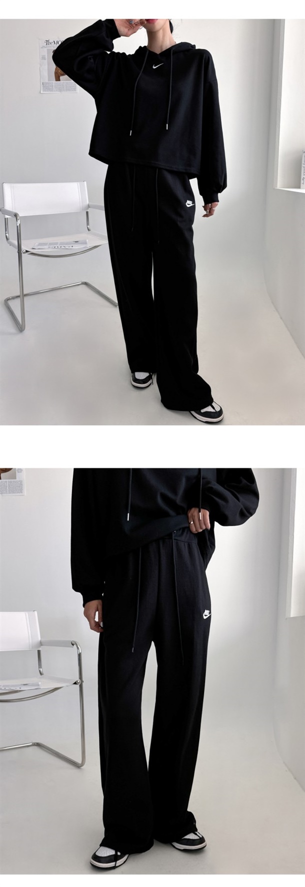 허리는 와이드롱핏 밴딩으로 편안하게 착용되며